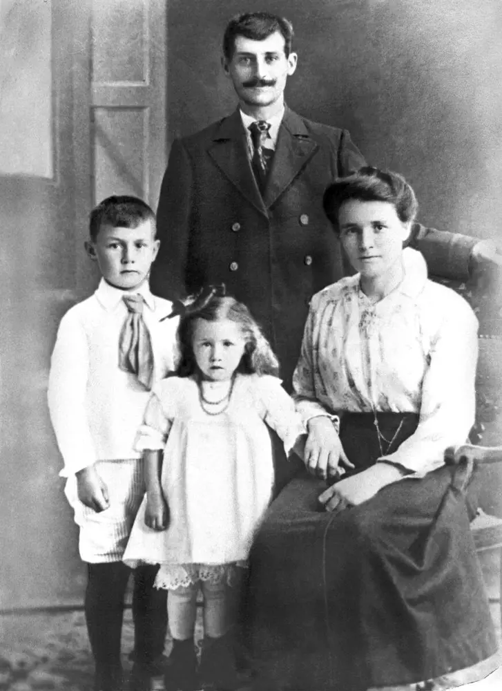 Sigurd Hansen fra Moum med familie. Hele familien døde i spanskesyken 1918. Bildet er datert 1918. Ukjent fotograf. Østfold fylkes billedarkiv