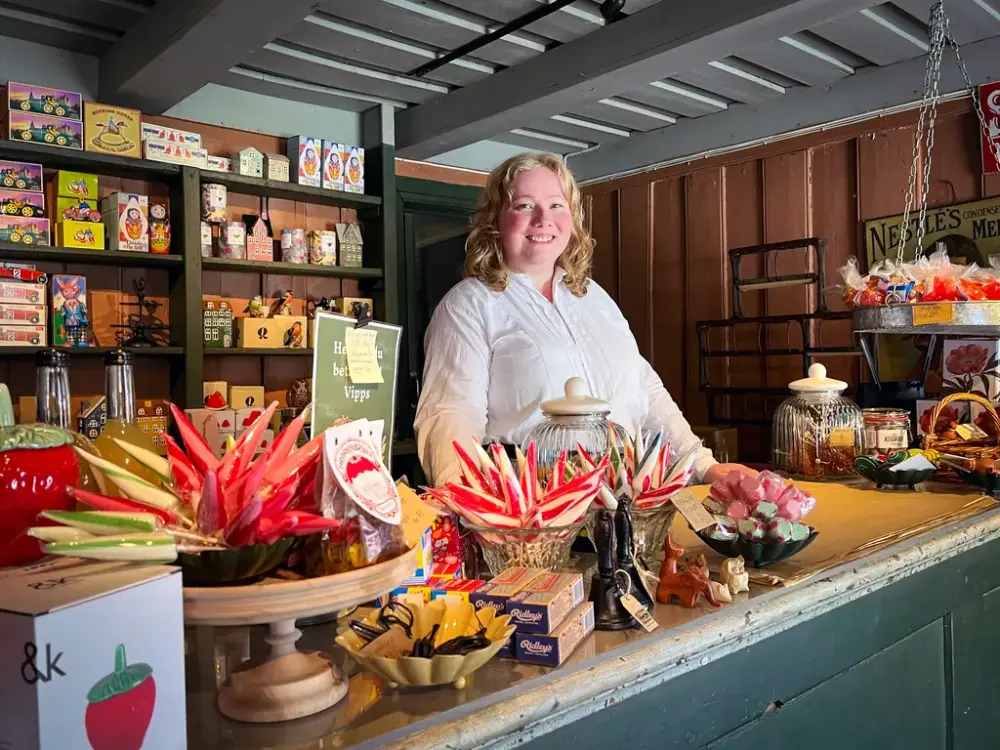 Inngang til Fru Aarsland butikk, er inkludert i inngangsbilletten, uten ekstra kostnad.