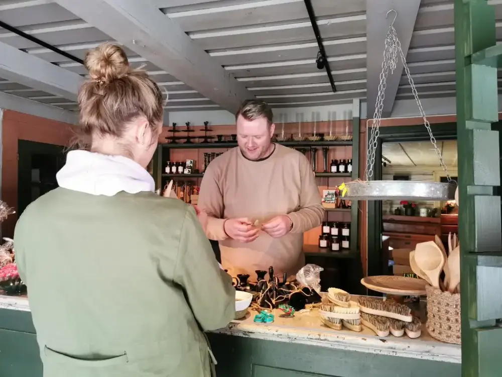 Glem heller ikke å besøke vår museumsbutikk, som bugner av flotte varer. Enten du er på jakt etter en spesiell suvenir til deg selv eller en gave til noen du er glad i, finner du et variert utvalg av produkter hos oss. Fra nydelige interiørartikler til deilige ullpledd og bøker om lokalhistorie – her er det noe for enhver smak.