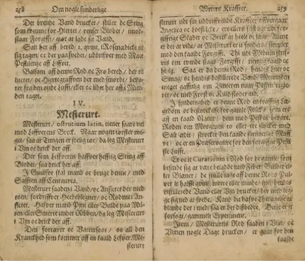 I Niels Mikkelsen Aalborgs «Medicin eller læge-boog» fra 1640, nevnes Mesterurten som medisin for en rekke sykdommer. «Mesterurt tiener saare vel mod Leffverens Breck. Naar nogen tørster meget, saa at Tungen er idelig tør, da leg mesterurt i Vin oc drick der aff.» I all hovedsak omtales mesterroten som en urt som fordriver væske. Det betyr at den fungerte godt mot lever-sykdommer, nyrestein og det som den gang het «vattersook», som vi i våre dager ville kalt ødem. I tillegg kurerer den gulsott, når den er blandet i vin. Og den kurerer spedalskhet når den er blandet i eddik.