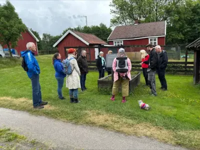 Vandringen ble avsluttet i kafeen og et forsøk på å rekruttere informanter til Urtearv og frivillige til museumsparken over et stykke Tropisk aroma.