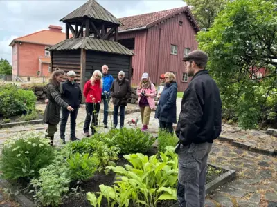 Under de store løvtrærne i Ruinparken mintes vi den norrøne mytologiens skapelsesberetning og ved Ole Martins historiske gullkorn vår nære tilknytning til jord og natur. Av andre høydepunkter å trekke frem er selvfølgelig den flotte urtehagen foran Olavskapellet som snart står i full blomst, men også de historiske hagerosene som Borgarsyssel overtok fra NMBU i 2024.