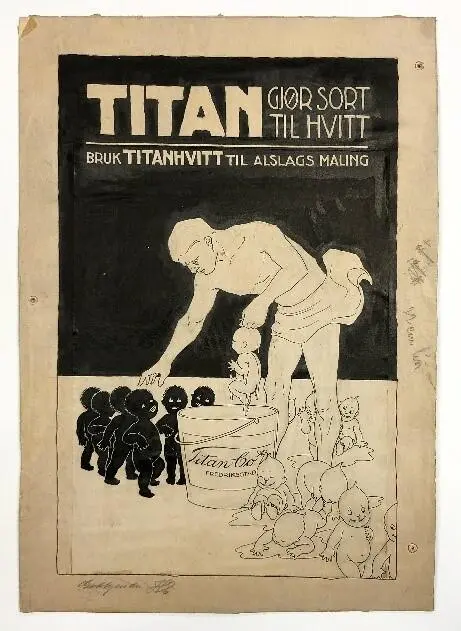 Illustration: “Titan Makes Black to White.” Original drawing from 1920. Østfoldmuseene archive.