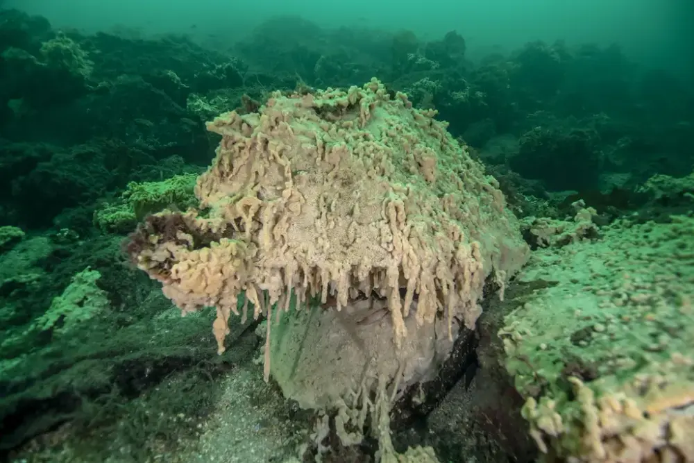 Havnespy er en invasiv sjøpung som ble for første gang oppdaget i Norge i Engøysundet i 2020 og som truer fjordenes økosystem. Bilde: Rudolf Svensen, Museum Stavanger (MUST)]