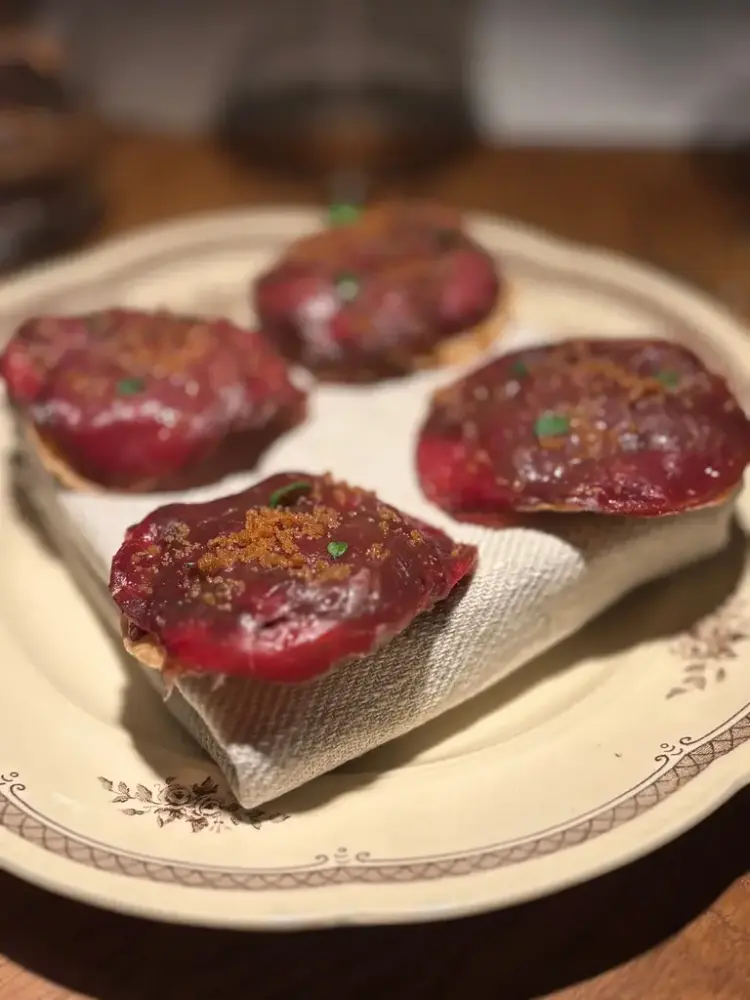 Havrelefse med røkt reinsdyrhjerte og lår. Marianne Løken / Østfoldmuseene