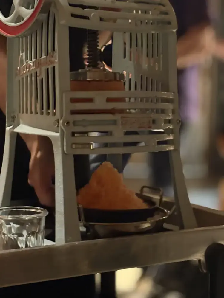 Gammel teknologi blir moderne kokkekunst. Her kvernes friske og fermenterte grønnsaker og bær til en forfriskende slush. Marianne Løken / Østfoldmuseene