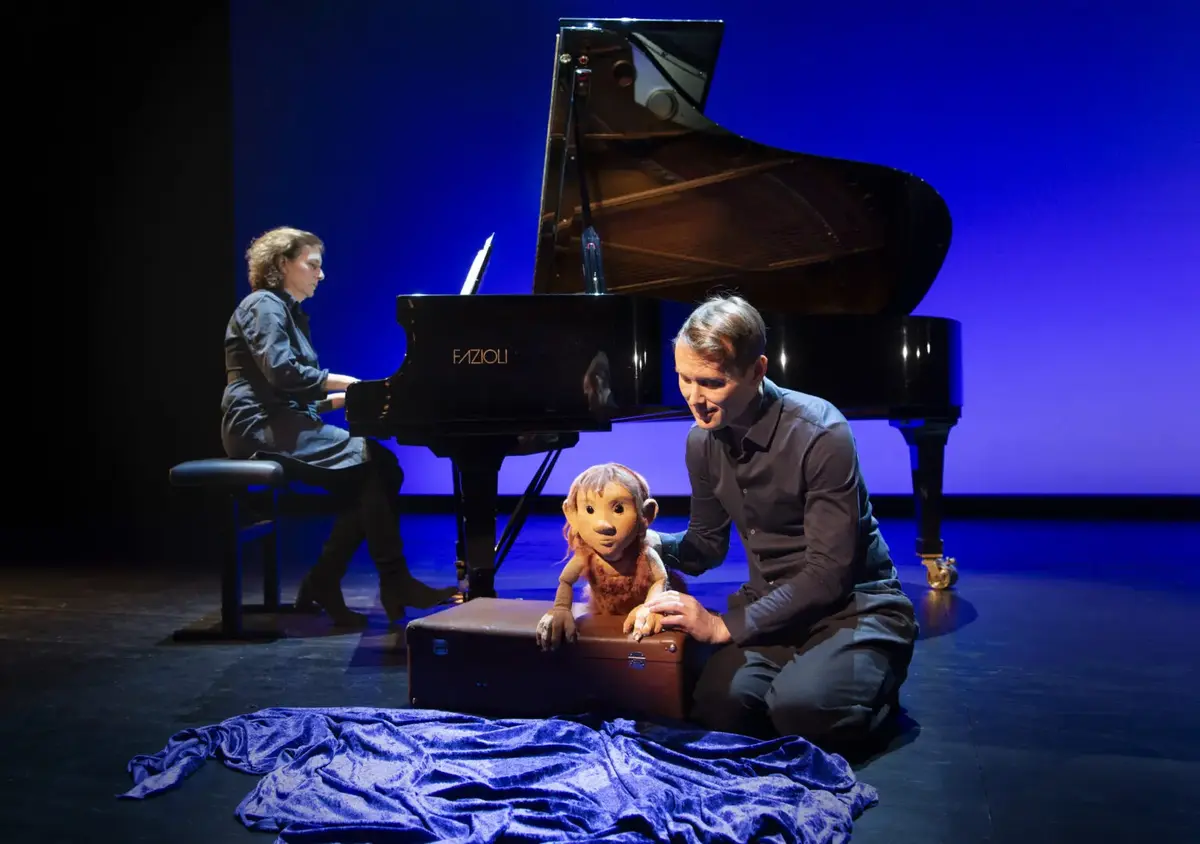 På scenen får du oppleve Haakon som dukkespiller og Margrit på piano.