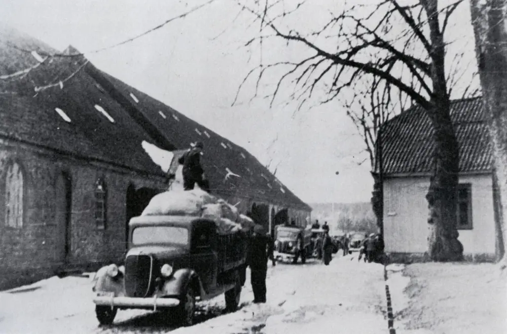 Depotene i Gamlebyen tømmes 9. april 1940. Foto: Fra boken "Fredrikstad under krig og okkupasjon".