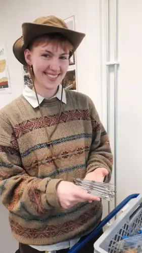 Av og til finner arkeologene små gjenstander i jordsmonnet. Og av og til kan disse være så små at de kommer til skade for å kaste dem. Det har Heen selv opplevd. Heldigvis har de da tatt en ekstra kikk gjennom avfallshaugen og funnet igjen små perler og annet som ikke ble oppdaget i første runde.