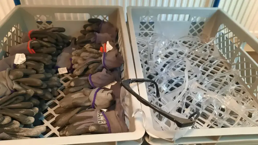 Arkeolog og museumsformidler Solveig Heen viser utstyret Haldens fjerdeklassinger får bruke når de leker arkeologer.
