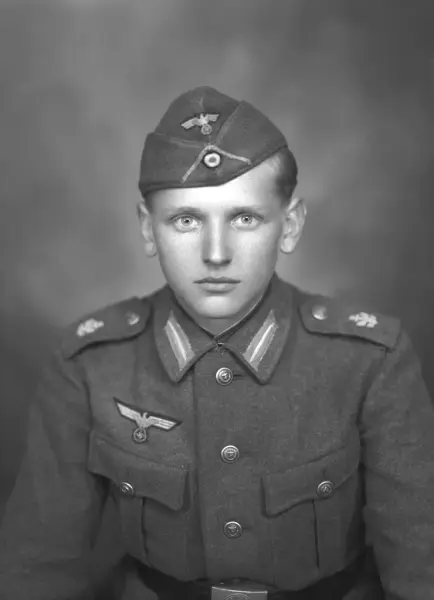Tysk soldat, stasjonert på Rauøy i Onsøy 1942. May Hansson / Østfoldmuseene – Fredrikstad
