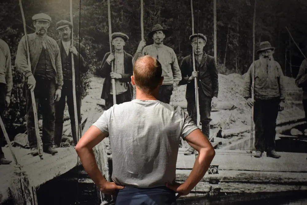 Sentralt i museets kulturhistoriske utstilling står tømmerstokken. Ved å følge dens ferd fra skogen, gjennom vassdragets vannveier og frem til sagbrukene og tresliperiene, vil du bli kjent med tømmerfløtingens historie. Underveis vil du også bli kjent med tømmerhuggerne, fløterne, sagbrukseierne og naturligvis den store kanalbyggeren, Engebret Soot.