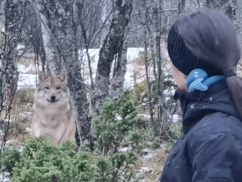 Nærmøte med en de ville ulvene i Langedrag Naturpark. Hanne Kristin Gabrielsen