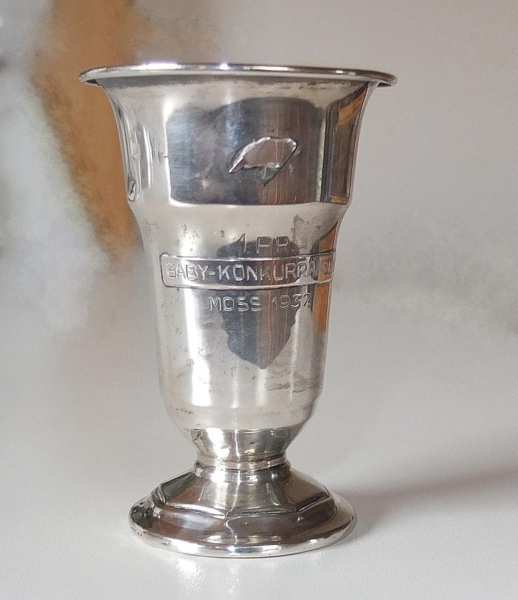 En av Moss by- og industrimuseums informanter, Bengt Eriksen, besøkte Ruth i hennes hjem på Tronvik tidligere i vår, og på hans spørsmål om hun hadde noen minner fra konkurransen fant hun fram et bilde og en sølvpokal med inskripsjonen: