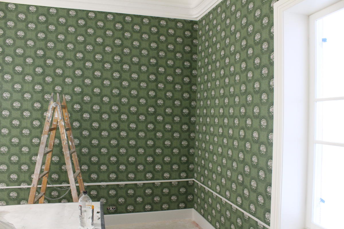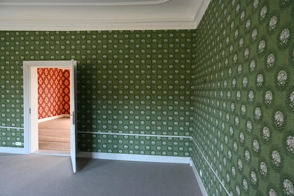 Det er en fantastisk grønn tapet som omgir dette rom i dag. Dette rommet er antagelig det som omtales som sengekammeret i 1820. I 1822 var rommet upanelt, men med et gipset tak og en tre-etasjes kakkelovn. Rommet hadde da to vinduer, og to blindvinduer som for interiøret ikke er synlig. Rommet fikk sin grønnlige tapet, som du kan skue som et reprodusert produkt i dag, mellom 1822-1838. Det var nettopp under denne tiden at rommet fikk sin tittel «grønnkammerset». Tapeten ble funnet inne i et kott som stod i hjørnet av rommet.