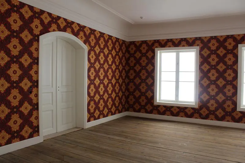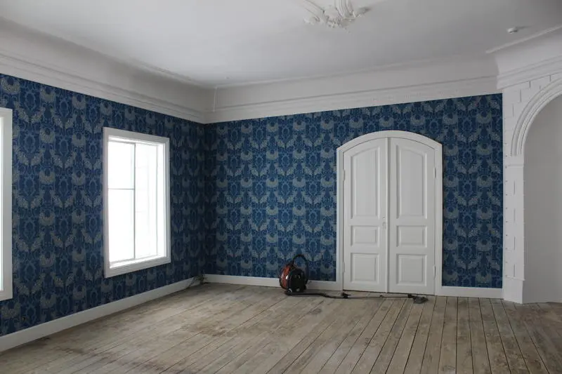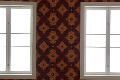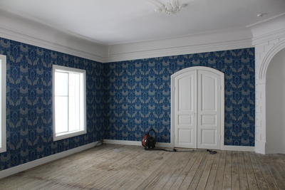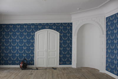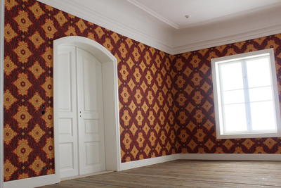 Resultat du idag ser av av tapet- og fargevalg er basert på bygningsarkeologiske undersøkelser og rommets historiske stiluttrykk. De bygningsarkeologiske undersøkelsene ble gjort av Professor emeritus Jon Brænne våren 2018. Det forelå ikke tapetrester i alle rom, men der det fantes er dette brukt for å gjenskape hvordan rommet så ut, samt er malerier brukt.