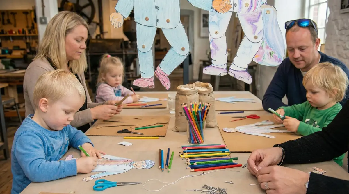Bli med på en skapende og lærerik familiedag i Moss by- og industrimuseum! På dette kreative sprellemann-verkstedet får barn og lekne voksne utdelt en kartong med en sprellemann som skal fargelegges, klippes ut og monteres. Til slutt får du ta den med deg hjem!