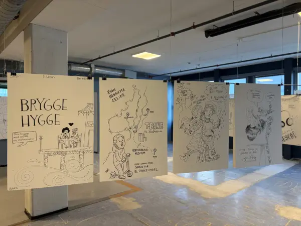 Kveldsarrangementet var en del av utstillingen Fremtidens Østfold (21.8-7.9.2025) – et samarbeid mellom Østfoldmuseene og Østfold Internasjonale Teater. Utstillingen bygger på over 550 intervjuer med østfoldinger om savn, håp og fremtid der de bor. Intervjuene er utført og illustrert av profesjonelle kunstnere i prosjektet In Search of Democracy 3.0, som siden 2020 har turnert hele fylket. For aller første gang vises illustrasjonene samlet – i Østre Bydel i Sarpsborg, rett før stortingsvalget 2025. Utstillingen er en samtalearena der publikum kan oppleve et mangfold av stemmer og visjoner, se forestillinger og delta i åpne samtaler om hvem vi er – og hvor vi skal.