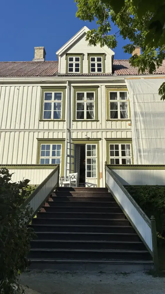 - Melbo hovedgård, et industrimaktsenter fra rundt 1900, med bygninger, hage og engelsk park – og en terrasse hvor vi nøt kaffe i solen til tonene av Kirsten Fløgstad, som hadde en romanse med en av gårdens sønner. Utsikten over asketrær og lind mot Lofotens fjellsilhuett satte stemningen.