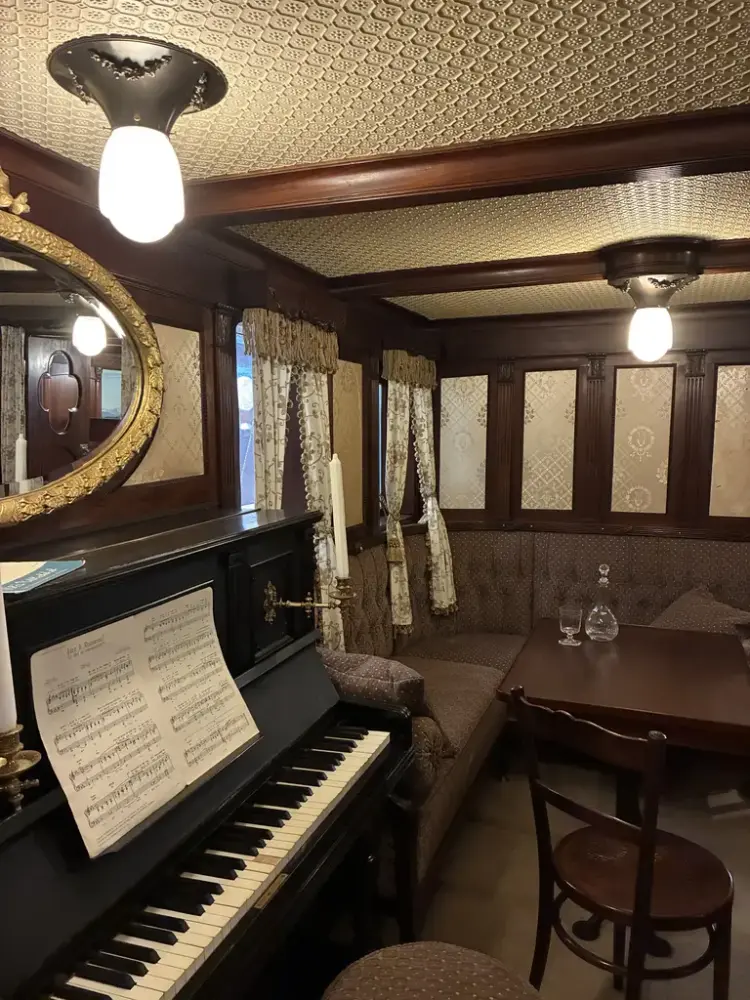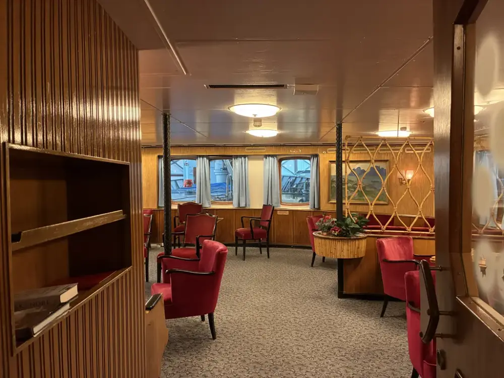 Vi besøkte også Hurtigrutemuseet, og gikk inn i de flytende salongene på DS Finmarken (1912) og MS Finnmarken (1956).
