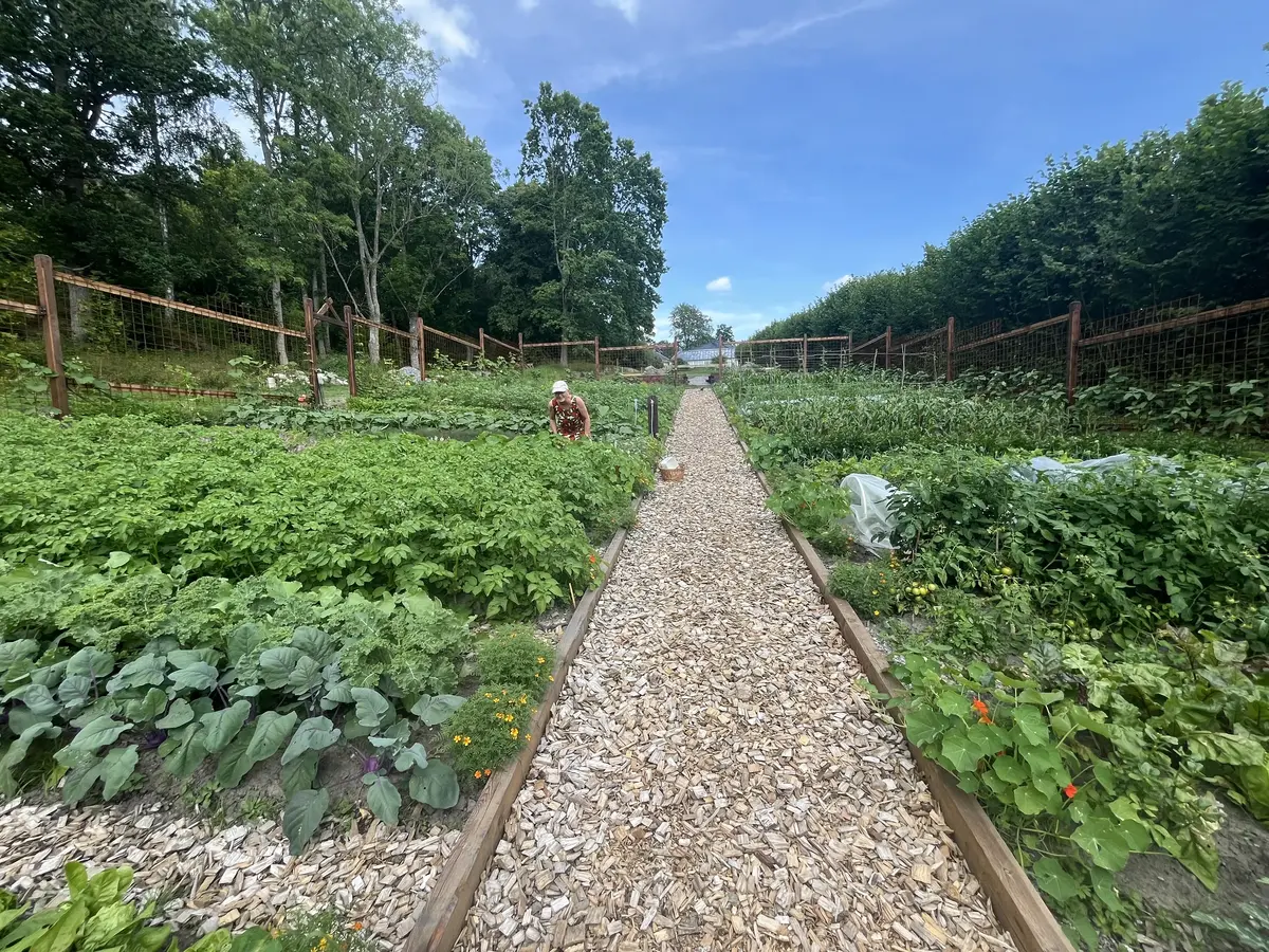 Grønnsaksbed ble lagt opp 4. juni, alle plantene var i jorda rundt 12. juni, den første salaten og litt krydderurter ble høstet i begynnelsen av juli, og nå, godt ut i juli, kan vi høste både squash, agurk, tomat, knutekål, grønnkål, bladbete med mer!