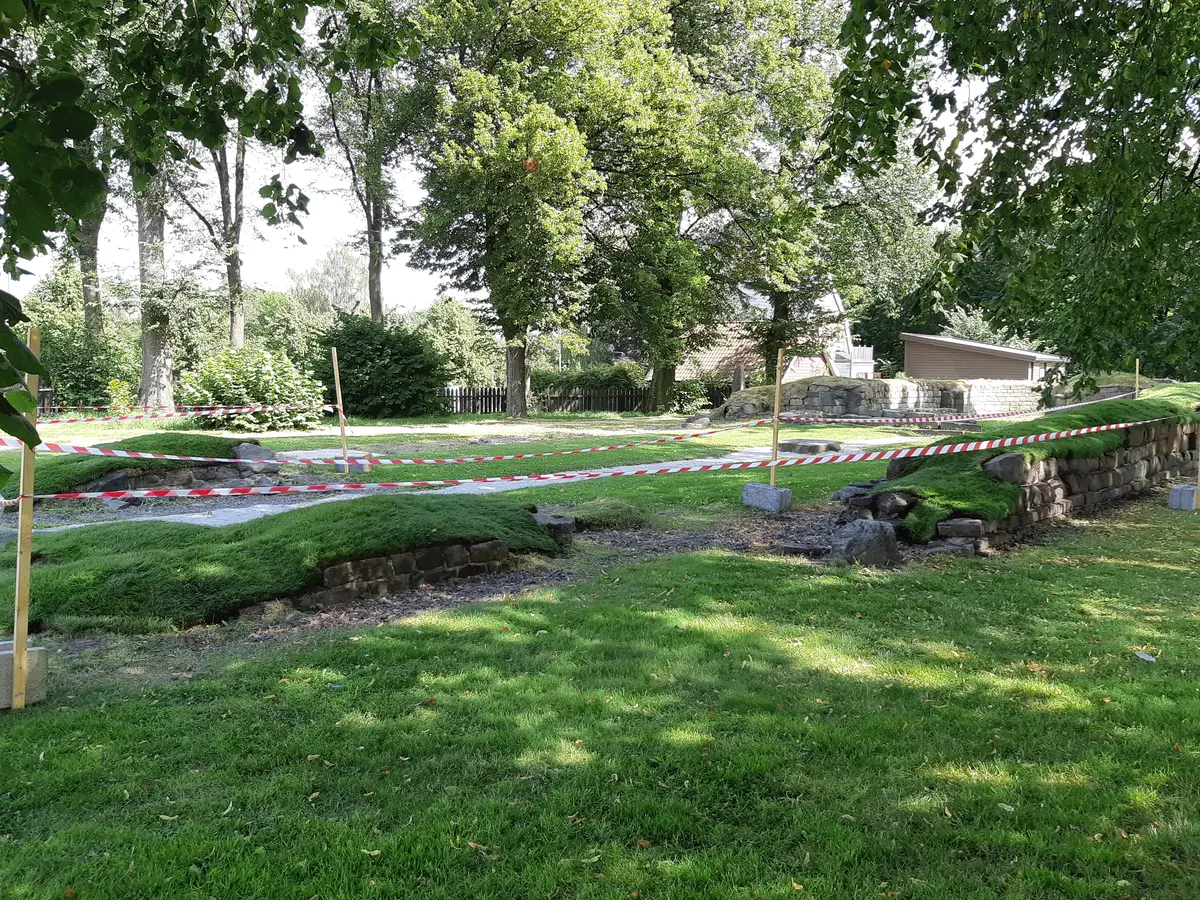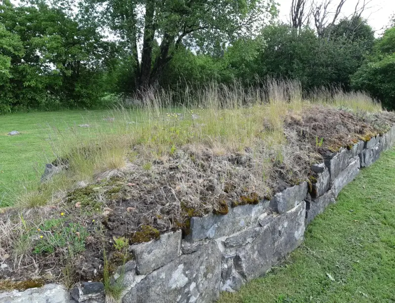 På St. Nikolas kirkeruin er vi i ferd med å sluttføre arbeidet med å bytte ut toppdekket på murverket. Etter flere år med tråkk, slagregn og stekende sol, ble det beskyttende gresstorvlaget på murverket i koret byttet ut i 2024. Da hadde det gamle toppdekket ligget i ca. 15 år. Nå holder vi på å gjøre det samme på skipsmuren og på restene etter vesttårnet (tårnfoten). Murerne har nå tatt av gresstorva og skrapet vekk jordlaget helt ned til det underliggende leirelaget (bentonitt) som ligger over kalken. Deretter er bentonitten supplert og dekket over igjen med et nytt lag av jord og gresstorv. Bentonitt er en vulkansk leire som trekker til seg fuktighet og dermed fungerer som en vannreserve for det overliggende laget av gresstorv. Begge er med på å holde murverket i ruinen tørt. Nå når det nye toppdekket er på plass, skal vi i løpet av høsten steame ruinen for grønske og gå over murverket for å se om noe av kalken i fugene mellom steinene må byttes ut.